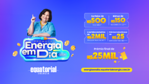 A edição 2024 da promoção ‘Energia em Dia’ vale para todo o Estado e vai até 31 de maio de 2025. Podem participar os clientes pessoa física, cadastrados como residencial, e que sejam titular da conta. Para concorrer aos prêmios, o cliente precisa estar adimplente, ou seja, com as contas em dia, conhecer todo o regulamento e se cadastrar por meio do hotsite da promoção: https://energiaemdia.equatorialenergia.com.br/.