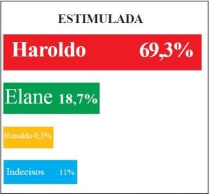 Na pesquisa espontânea, Haroldo também aparece com vantagem, tendo 65,3% da preferência dos votos. Elane aparece com 16,7%, apresentando alto índice de rejeição, com 35,3% dos entrevistados afirmando que não votariam nela em hipótese alguma.