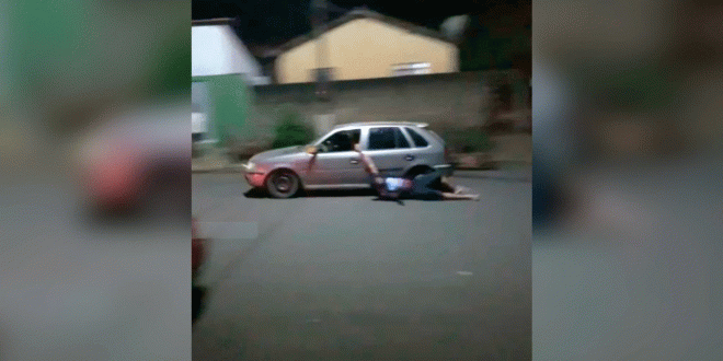 Um homem foi arrastado por um carro após uma discussão em Minaçu, cidade localizada na região Norte de Goiás. O caso ocorreu na noite de domingo (5), no Centro do município, e foi registrado por testemunhas que estavam no local. Apesar do susto, a vítima teve ferimentos leves. A violência ainda não foi registrada na Polícia.