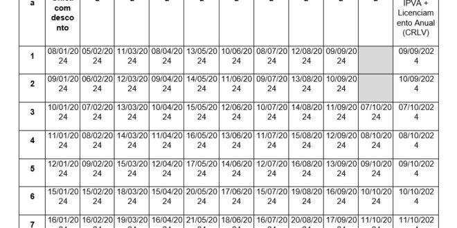 O Governo de Goiás, por meio da Secretaria da Economia, divulgou na manhã desta sexta-feira (22/12), o calendário do Imposto sobre a Propriedade de Veículos Automotores (IPVA) de 2024. O Estado oferece desconto de 7% para o pagamento à vista para quem quitar o valor em janeiro.