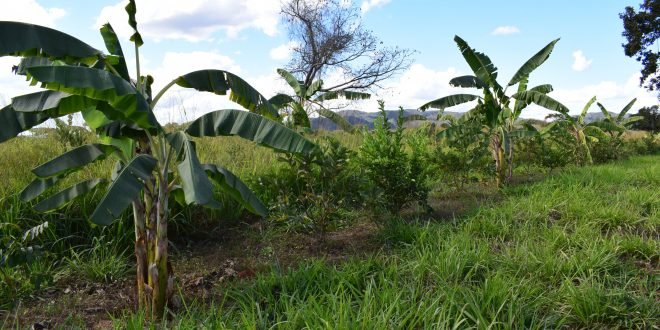 controle biológico de pragas, evitando-se produtos químicos como inseticidas e herbicidas. Outro diferencial do sistema agroflorestal está na irrigação, usada somente em casos extremos no período da seca com auxílio de caminhão pipa.
