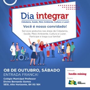 A Lundin Mining realiza a 13° edição do Dia Integrar, no dia 08 de outubro, das 8h às 16h, no Colégio Municipal Professor Divino Bernardo Gomes. A ação é resultado de uma parceria com a Prefeitura de Alto Horizonte, entre outras instituições. O evento traz uma programação completa de serviços que beneficiarão a população local e das cidades vizinhas.