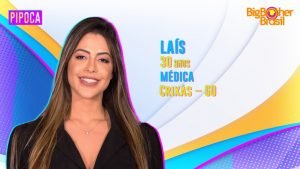 Laís tem 30 anos e atua na área de clínica geral. Ela trabalhava na linha de frente contra a Covid-19, e, antes de entrar no programa, estava terminando uma especialização em dermatologia.