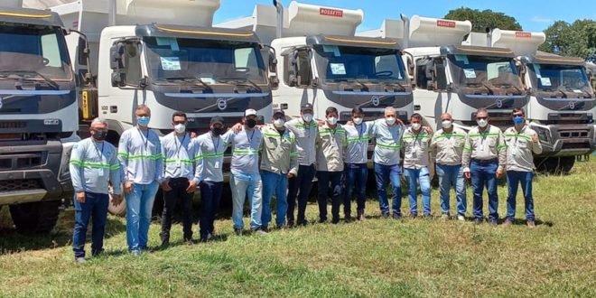 A Mineração Serra Verde acaba de receber a nova frota de caminhões de transporte de minério e estéril, com 21 veículos que serão utilizados na operação de terras raras prevista para início ainda este ano, é o que informa Sérgio Saraiva, Gerente de Mina da SVPM. Tendo como objetivo se consolidar como uma das principais produtoras mundiais de terras raras do mundo, a empresa já contava com outras 21 máquinas pesadas, como escavadeiras, tratores e carregadeiras, recebidas em 2021.