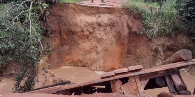Em 2022, a mesma ponte já havia caído. Prefeitura informou que ainda não há prazo para reconstrução.