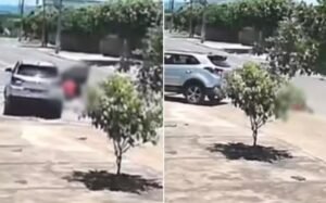 Uma mulher de 35 anos morreu após cair de um carro em movimento e ser atropelada pelo próprio veículo, em São Luís do Norte, no norte de Goiás. O acidente aconteceu no dia 27, no bairro Nova Esperança, e foi registrado por câmeras de segurança. A vítima estava no banco do passageiro e caiu durante uma manobra em marcha ré. As imagens mostram o momento em que o carro permanece estacionado por cerca de três minutos. Logo após a vítima entrar no veículo, o automóvel começa a se mover em marcha ré, faz giros completos e passa por cima da passageira duas vezes. O carro só para após bater na marquise de um comércio. A motorista tem 57 anos e era ex-cunhada da vítima.