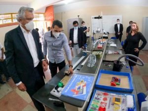 O governador Ronaldo Caiado conheceu a estrutura que será disponibilizada nos 120 novos laboratórios que começam a ser instalados em 86 Centros de Ensino em Período Integral (Cepi) da rede estadual. Os investimentos somam R$ 4,5 milhões, em parceria com o governo federal, e vão equipar aulas práticas de física e de biologia. “Não descuidamos um minuto da educação dos nossos jovens do Estado de Goiás”, defendeu o governador. “A preocupação é dar a vocês [alunos] um ambiente cada vez melhor, adaptado para desenvolverem sua capacidade, seu potencial criativo, ampliar a oferta de laboratórios e dar condições para que o ambiente escolar seja o melhor possível”, destacou.