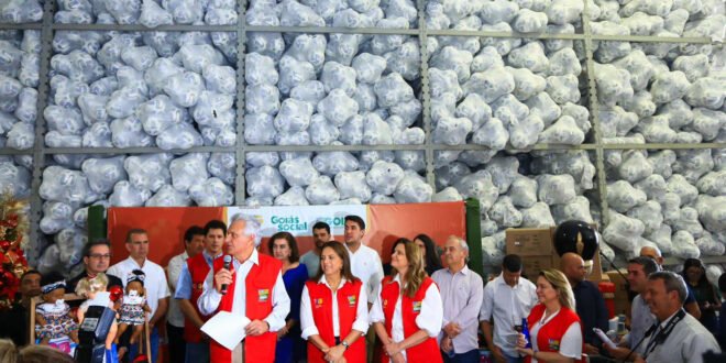 O governador Ronaldo Caiado e a primeira-dama e coordenadora do Goiás Social, Gracinha Caiado, realizaram nesta sexta-feira (17/11) as primeiras entregas de brinquedos do Natal do Bem 2023. Eles estiveram no galpão do setor Ipiranga, em Goiânia, onde estão armazenados 525 mil itens. “Estamos muito alegres em poder fazer este Natal. Preparamos o que há de melhor para as crianças em situação de vulnerabilidade, com muito amor e carinho”, afirmou Gracinha.