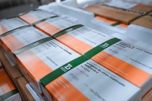 Com este quantitativo, Governo do Estado bate marca de 500 mil doses de vacinas contra Covid-19 recebidas desde janeiro. Os imunobiológicos encaminhados pelo governo federal chegaram pelo Aeroporto Internacional Santa Genoveva, em Goiânia. De lá, o carregamento seguiu para a Central Estadual de Rede de Frio, unidade da Secretaria de Estado da Saúde (SES) no Jardim Santo Antônio, na capital. Após conferência da quantidade, a pasta inicia, ainda nesta quarta-feira, a distribuição para todas as 18 Regionais de Saúde, que repassarão as vacinas aos municípios.