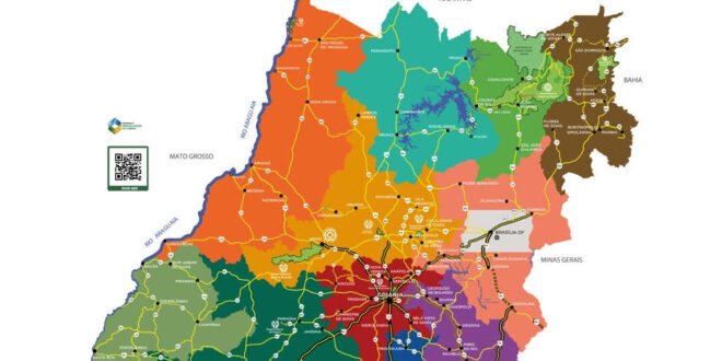 O Governo de Goiás, por meio da Goiás Turismo, divulgou, nesta quarta-feira (19/06), o novo Mapa do Turismo 2024, que passa a contar com 86 municípios, distribuídos em 12 regiões turísticas (Ouro, Chapada dos Veadeiros, Chapada das Emas, Estrada de Ferro, Águas Quentes, Encantos do Planalto Central, Negócios e Tradições, Lagos do Paranaíba, Pegadas no Cerrado, Terra Ronca, Serra da Mesa e Vale do Araguaia).
