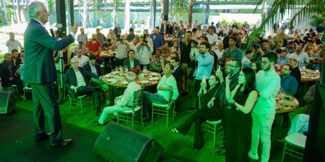 Em continuidade aos eventos de confraternização com autoridades e imprensa, o governador Ronaldo Caiado recebeu, na manhã desta quarta-feira (06/12), representantes de veículos de comunicação do interior de Goiás. Cerca de 180 profissionais participaram de um café da manhã no Palácio das Esmeraldas, na Praça Cívica, em Goiânia, como forma de reconhecimento pelo trabalho desempenhado na produção de informações úteis ao cidadão.