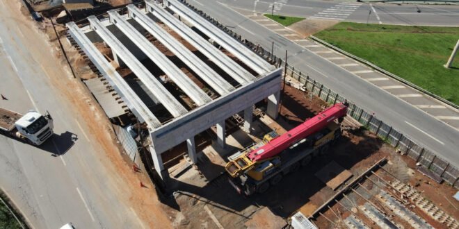 O Governo de Goiás, por meio da Agência Goiana de Infraestrutura e Transportes (Goinfra), alcançou os 30% de execução das obras do Viaduto Portal da Fé, na GO-060, também conhecida como Rodovia dos Romeiros, em Trindade. Nesta etapa, equipes técnicas realizam o içamento e fixação de longarinas, componentes de concreto e aço que têm a função de suportar cargas e distribuir esse peso ao longo de toda a estrutura.