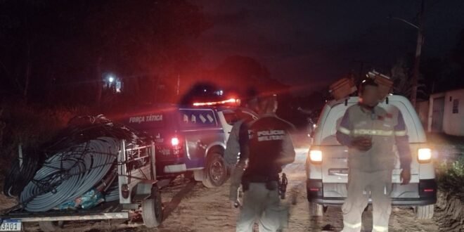 Uma propriedade rural, em Aparecida de Goiânia, foi alvo de uma operação de combate ao furto e receptação de materiais elétricos na noite desta quarta-feira (22), na região atendida pelo 45º Batalhão da Polícia Militar (BPM). A operação teve início após o setor de inteligência da Polícia Militar receber denúncias sobre um local utilizado para a queima e armazenamento de fios de cobre subtraídos. Ao chegarem ao endereço, as equipes do 45º BPM e do Tático localizaram uma carretinha carregada com cabos e confirmaram a existência de um ponto de descarte de materiais ilícitos.