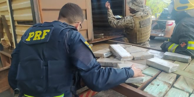 As forças de segurança pública em Goiás (PRF/GO – PMGO) após compartilhamento de informações com a PRF/MT, atuando de forma integrada, realizaram nesta segunda feira (01/11), a abordagem a um de veículo de carga e apreenderam cerca de 300kg de cocaína na região norte de Goiás.