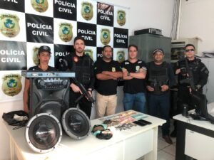 A Polícia Civil do Estado de Goiás, por meio da equipe de Policiais da Delegacia Municipal de Uruaçu (DP) e Delegacia da Mulher (DEAM), em cumprimento a mandado de busca e apreensão expedido pela I Vara Criminal da Comarca de Uruaçu-GO, após diligencias na residência de D.F. S., de 27 anos, nesta cidade de Uruaçu, encontraram drogas (maconha e crack) escondidas em tijolos no quintal da casa, próximo a um cachorro da raça Pit Bul, que estava amarrado em uma arvore, bem como foi localizado, embaixo do colchão da cama de casal, uma arma de fogo, qual seja, um revolver no calibre 38, acompanhado de munições do mesmo calibre, além de serem apreendidos nesta conhecida “biqueira”, diversos objetos de origem ilícita, provavelmente oriundos da troca por substancias entorpecentes. Por fim, no local ainda foi identificado usuário que havia deslocado para comprar drogas de D.F.S., sendo que esse último foi preso, portanto, em flagrante por tráfico de drogas e posse ilegal de arma de fogo.