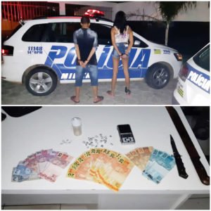 A equipe da Polícia Militar de Campinorte em patrulhamento pelo setor central da cidade, no último dia 07, avistou a pessoa de A. B. J. em atitude suspeita, ao proceder a abordagem e busca pessoal, foi encontrado com ele, 07 porções (pedras) de crack embaladas para venda e a quantia de R$ 764 reais em espécies em notas trocadas, sendo a maioria no valor de R$ 20 reais, e 01 (uma) arma branca tipo faca, ao entrevista-lo, a pessoa informou que tinha pegado a droga para fins de comércio, em sua residência de propriedade de J. .R S, localizada no setor Vila Jordânia, local conhecido por comercialização de drogas.