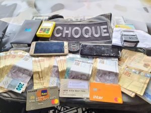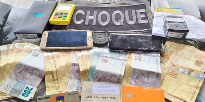 Militares do Batalhão de Choque efetuaram a prisão de um indivíduo, suspeito de aplicar o golpe conhecido como “benção, tia”. A prisão foi realizada na Vila Pedroso, em Goiânia, após uma denúncia anônima. Com o homem, os policiais encontraram R$ 5.535,00 em espécie, dois aparelhos de celular, máquina de cartão, quatro cartões, anotações com dados bancários de outras pessoas, 14 chips, além de folhas de atestado médico em branco e um carimbo usado para falsificar atestados e receitas médicas. Ele foi conduzido à Central de Flagrantes.