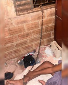 A Polícia Civil do Estado de Goiás, por meio da Delegacia Municipal de Uruaçu, prendeu em flagrante uma mulher que mantinha sua filha de 16 anos de idade em cárcere privado, acorrentada pelo pé em uma grade.
