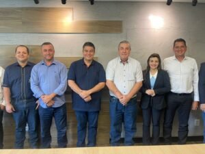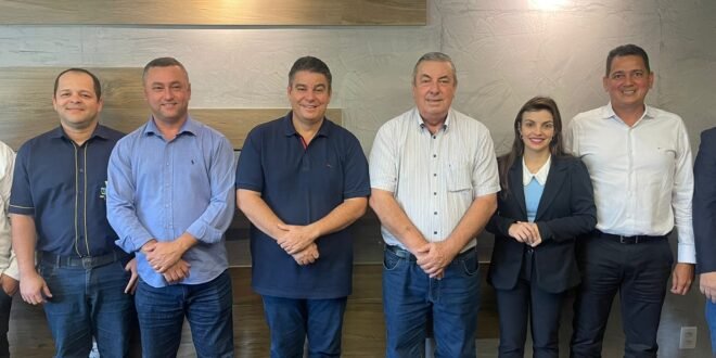 O Prefeito Valmir Pedro, acompanhado do empresário e presidente do União Brasil, Ozires Ribeiro e também do secretário municipal de Cultura e Turismo, Dr. Moacir Galdino, participaram na manhã desta terça-feira, em Goiânia, de uma reunião com a deputada federal Marussa Boldrin e com o deputado federal José Mário Schreiner.