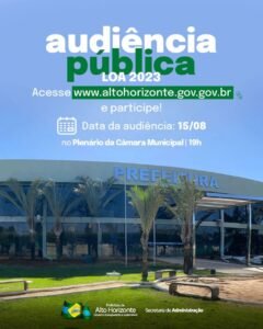 A Prefeitura de Alto Horizonte convida toda comunidade para participar da audiência pública para discutir sobre o orçamento de 2023, isso mesmo vamos falar sobre a LOA – LEI DE ORÇAMENTO ANUAL, é muito importante saber sua opinião e também sua sugestão para o desenvolvimento do nosso Município. Esperamos você hoje 15 de agosto (segunda-feira), a partir das 19h no Plenário da Câmara Municipal.
