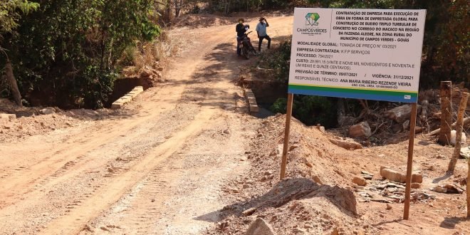 Visando a melhoria das estradas vicinais, a Prefeitura de Campos Verdes por meio da Secretaria de Obras finalizou a construção de um bueiro no Córrego dos Macacos. Cerca de R$ 29 mil foram investidos na obra que foi custeada com recursos próprios.