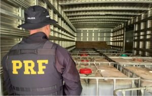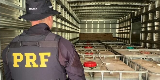 Segundo a PRF, o motorista não atendeu a ordem de parada. Na fuga, dois homens pularam do caminhão e desapareceram no matagal. A corporação falou que o veículo foi roubado na Bahia, em 2022, e rodava com placas clonadas.