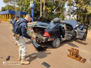 Um homem de 29 anos e uma mulher, 23, foram detidos na manhã desta quinta-feira (23) transportando 22 quilos de pasta base de cocaína. A droga foi localizada pela PRF em um fundo falso do veículo em que o casal viajava, na BR 060, em Jataí, sudoeste de Goiás.