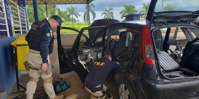 Em fiscalização na unidade da PRF em Anápolis, um Ford Fiesta ocupado por um jovem de 22 anos foi parado pelos policiais rodoviários federais. Durante a averiguação, o rapaz disse que saiu do estado do Mato Grosso do Sul com destino ao município de Novo Gama (GO). Ele prestava informações contraditórias sobre as motivações da viagem, o que acabou ensejando uma vistoria minuciosa no veículo.