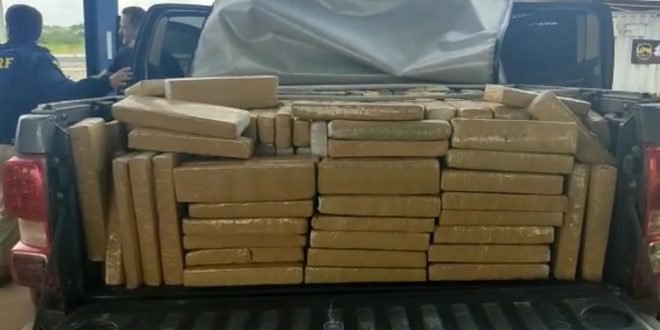 Na carroceria e dentro do veículo, os PRFs encontraram tabletes de maconha espalhados por todas as partes, totalizando uma tonelada da droga, causando um prejuízo de mais de R$ 2 milhões ao crime organizado.