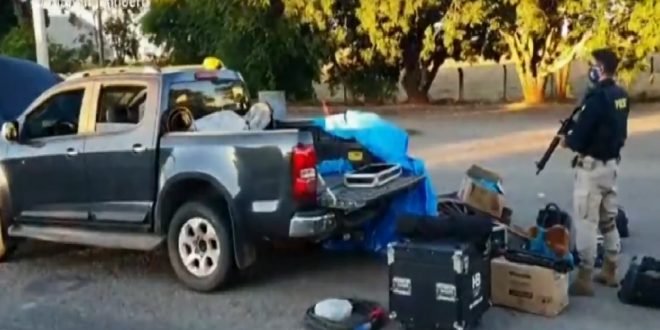 A Polícia Rodoviária Federal encontrou o carregamento de remédio durante uma abordagem de rotina na BR-153. “Os quatro ocupantes disseram que montam estruturas para eventos e que estavam voltando de um show. Os policiais desconfiaram da versão, pois os eventos estão suspensos durante o período de pandemia”, disse o assessor de imprensa da PRF, Newton Morais.