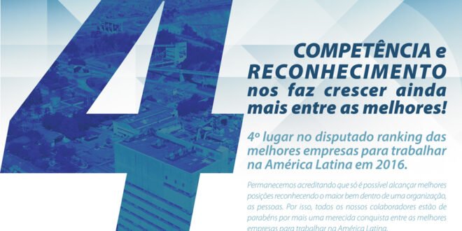 A mineradora acredita que só é possível alcançar melhores posições ao reconhecer o maior bem dentro de uma organização, as pessoas. Por isso, todos os colaboradores estão de parabéns por mais essa conquista entre as melhores empresas para trabalhar na América Latina, pois esse prêmio só foi possível devido ao trabalho e a união de todos eles.