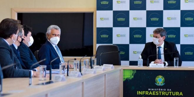 Durante audiência, nesta terça-feira (22/06), com ministro da Infraestrutura, Tarcísio Gomes de Freitas, em Brasília, governador confirma que Memorando de Entendimento para formalização do complexo será assinado dia 15 de julho. Ainda na capital federal, governador recebe confirmação de lançamento da pedra fundamental da Ferrovia de Integração Centro-Oeste, em Mara Rosa, para agosto, e avança nas tratativas para garantir terreno onde será construído Hospital do Câncer de Goiás, na capital