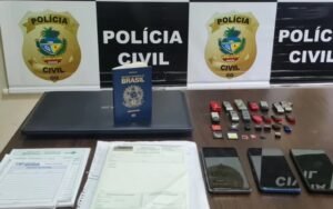 Após as investigações, a Polícia Civil pediu pela prisão preventiva e busca e apreensão na casa da investigada, o que foi deferido pelo Poder Judiciário. Com a mulher, foram apreendidos três celulares, notebooks, mais de 15 pendrives, chips telefônicos, o contrato falso que ela teria feito com a mineradora, entre outros documentos.