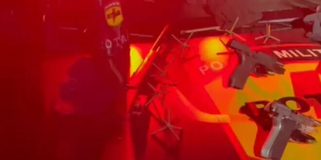 Na chácara foram apreendidas 11 armas de fogo, incluindo 4 armas longas, muita munição e explosivos que a polícia acredita que seriam usados para detonar o cofre do pedágio