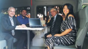 Van Sprinter do TJGO, equipada com bancos, mesas, computadores, impressoras e câmaras fotográficas. Também conta com o apoio de um técnico da Secretaria Municipal de Trânsito da cidade.