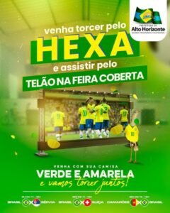 A Prefeitura de Alto Horizonte preparou um super telão na feira coberta para a transmissão dos jogos da Copa do Mundo Fifa 2022. Portanto comunidade altorizontina, vista sua camisa verde e amarela e vamos juntos torcer pela nossa seleção brasileira!