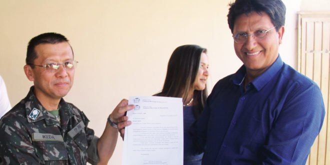 Lá reunidos com diretores de escolas municipais, estaduais e particulares, além de autoridades políticas e militares, o secretário municipal de Saúde, João Dias, ex-militar, realizou a doação de um terreno na Fazenda Santa Cruz do Jambo para uso de treinamento de tiro por parte dos alunos do Tiro de Guerra.