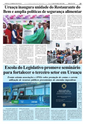 25 de março, o seminário cipal objetivo auxiliar as entida- dos recursos. A proposta tam- Câmara Municipal de Uruaçu, tivando boas práticas de gestão